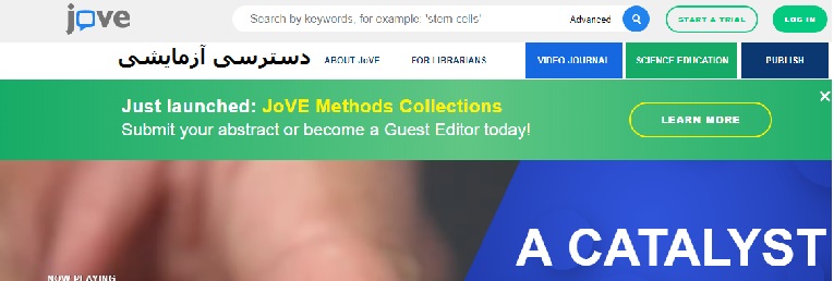 به اطلاع می‌رساند‌ دسترسی آزمایشی (Trial)  دانشگاه به مجموعه فيلم‌های آموزشی ناشر JoVE از طريق آدرس