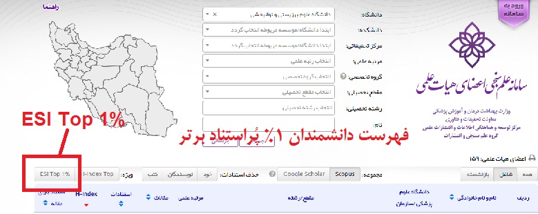 افزوده شد. در ويرايش جديد سامانه علمسنجی ، رتبه، تعداد مقاله و ساير شاخصهای استنادی اين افراد در آخرين ويرايش نظام رتبهبندی ESI نيز با انتخاب نشان فوق قابل مشاهده است. علاوه بر آن با انتخاب دکمه ESI Top 1% در سمت چپ و بالای سامانه علمسنجی، امکان مشاهده فهرست کامل اين افراد فراهم است |