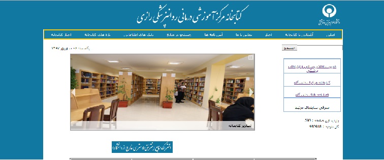 یکی از کتابخانه های تخصصی – بیمارستانی "کتابخانه مرکزآموزش ،درمانی، روانپزشکی رازی" هست