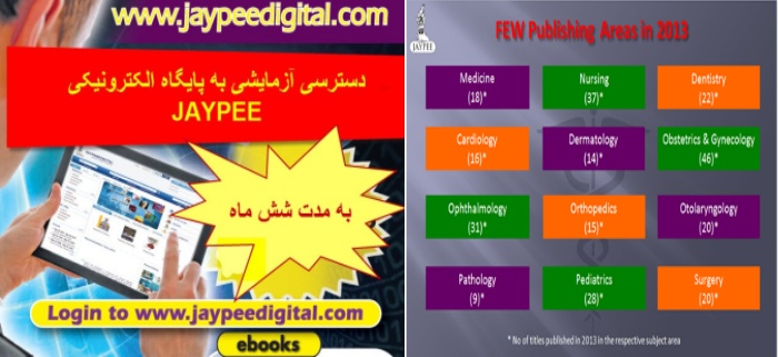 •· JAYPEE DIGITAL محل دسترسی محصولات الکترونیکی ناشر شامل کتب الکترونیکی، ژورنال و ویدئوهای آموزشی پزشکی است.