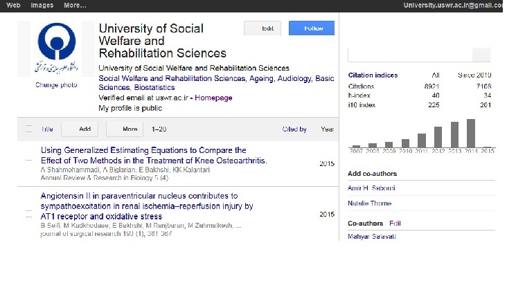 دانشگاه علوم بهزیستی و توانبخشی در گوگل اسکولار
